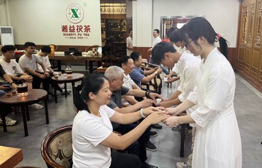 茶艺师陈龚丽精心准备了茶艺表演,为师生们展示了茯砖茶的冲泡艺术。在谢师环节,员工们身着传统茶服,向非遗传承人刘杏益老师,黄甜老师及其他老师鞠躬致谢。活动结束后,同学们纷纷表示,这次实践不仅让他们学到了知识,更感受到了非遗技艺的温度与传承的责任。此次研学活动是太阳成集团tyc9728与益阳茶厂校企合作的一次生动实践,为员工们提供了宝贵的第二课堂体验,也为非遗文化的传播注入了新活力。(一审:周晓红 二审:刘石泉 三审:钟桐生)