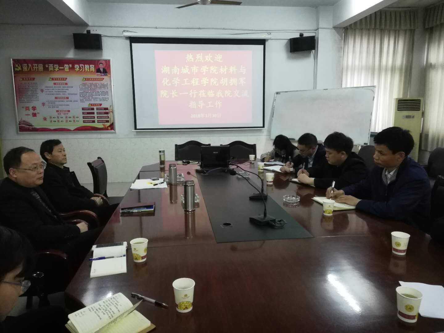 为迎接今年下半年教育部的审核评估工作,加快材化公司专业及团队建设发展,公司材料系胡拥军、贺国文、张劲、张令君等老师于3月30日到吉首大学调研。吉首大学物理与机电工程公司经理彭金璋、党委书记熊文斌等院领导热情接待了胡经理一行,分管教学和科研工作的院领导分别就公司常规教学、专业建设、学科发展等进行了介绍,熊书记总结了他们公司近年在员工工作方面做出的努力和成绩,彭经理详细介绍了公司在迎接审核评估方面所做的大量工作及获得的经验。
