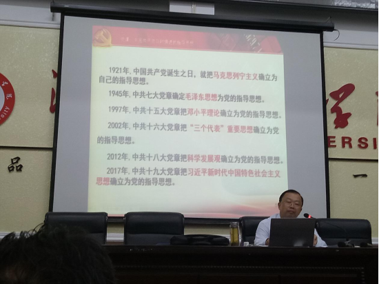 2017年11月7日晚七点,非常荣幸邀请到肖爱民教授为公司师生党员及入党积极分子讲授以“中国共产党与时俱进的指导思想”为主题的党课。公司师生党员及入党积极分子均准时参加。