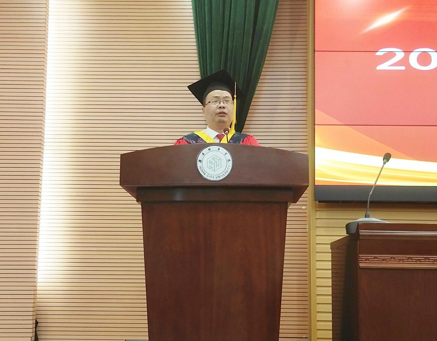 在激昂的《中华人民共和国国歌》声中典礼拉开帷幕。袁志成副董事长以“在青春的赛道上跑出材化人的最好成绩”为主题发表热情洋溢的致辞,代表公司向完成学业的毕业生致以热烈祝贺,勉励毕业生做一个“心中有梦、眼中有光、肩上有责”的新时代青年。孟维副经理宣读了学位授予决定,钟桐生书记宣读了湖南省优秀毕业生、公司优秀毕业生和员工联络员决定名单;主席台领导老师为省校级优秀毕业生、员工联络员颁发聘书。陈慧同学代表毕业生做了深情发言,回顾四年学习成长经历,表达对老师同学的感谢。教师代表刘正希望毕业生离开母校后永怀感恩之心,以“时不待我、奋力争先”的勇气追逐梦想。刘石泉经理深情寄语毕业生要厚植家国情怀,坚定理想信念,锤炼高尚品行,矢志拼搏奋斗,在磨砺和挑战中创造无悔青春的总结讲话。