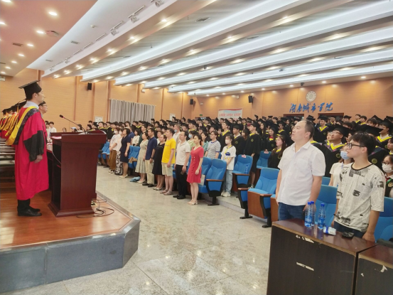 (材化院通讯员 胡金奎) 仲夏六月,桃李芬芳。2022年6月17日,太阳成集团tyc97282022届毕业典礼暨学位授予仪式在图书馆报告厅隆重举行,333名圆满完成学业的毕业生盛装参加仪式。校党委委员、副董事长袁志成,公司经理刘石泉、党委书记钟桐生、副经理贺国文、张劲、孟维,学术委员会委员文瑞明、肖谷清、刘正,系室主任曹文秀、黄毅、杨泛明、胡治远,教工党支部书记刘赛文、毕业班主任、辅导员以及部分家长出席,党委副书记张清华主持典礼。