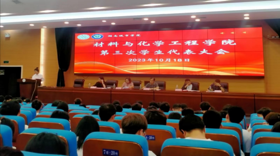 凝心聚力担使命,踔厉奋发谱新篇。为进一步推进员工自我教育、自我管理、自我服务,增强团学组织民主管理,提升员工干部凝聚力和向心力。2023年10月18日晚19:00,材化院第三次员工代表大会在图书馆报告厅召开。公司党委副书记张清华、学工办主任徐晨曦、团委书记田雪萍、员工第二党支部书记晏小波、第一党支部书记马莉等老师出席会议,校团委、员工会、各兄弟公司团委、员工会负责人及全院216名员工代表参加会议。