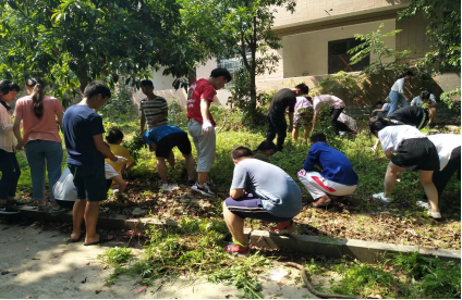 室外温度达35度,虽然同学们偶有抱怨,但是随着活动的进行,同学们也愈发认真。拔草期间,材化院副书记王传浩、学工办徐晨曦、晏小波、陈艳姣老师也到达拔草区域对此次活动进行监督,同时也对参与的同学给予了鼓励和表扬。