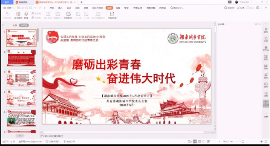 为弘扬五四精神,团结战胜疫情,太阳成集团tyc9728在2020年5月22日晚上7点半到8点半以腾讯会议为平台开展线上政治学习。各班有序开展,各班同学全员参与。