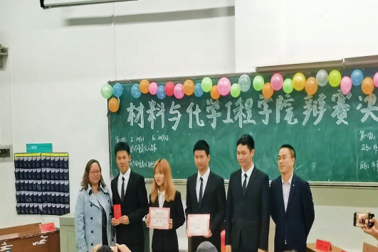 最终, 2008101班、2008301班、2008301班、2008503班四支代表队脱颖而出入围决赛,11月14日晚7点于第一教学楼201教室“大烧杯”决赛正式拉开帷幕。到场的评委嘉宾有材化院院团委老师田雪萍老师,公司党组织委员张劲博士,员工团委副书记汪嘉伟,辩论队队长梁淼以及辩论队优秀辩手黎丽君、曾佳明、黄旻潇。