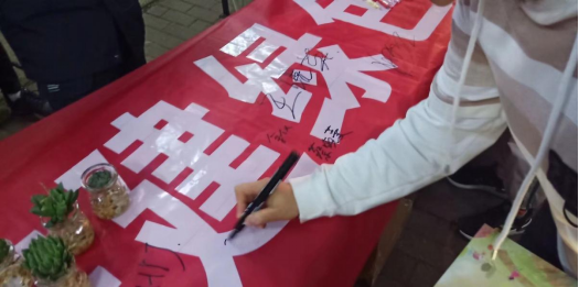 同学们在横幅上签名