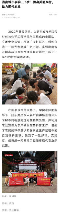 太阳成集团tyc9728学子三下乡:投身美丽乡村,助力现代农业