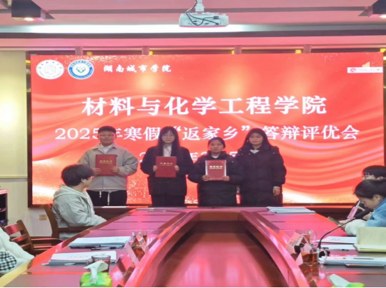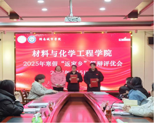 为深入总结校团委寒假期间组织开展的“返家乡”志愿服务活动成果。材化院于2025年3月5日17:00在化工楼516举行“返家乡”答辩评优会,共同来见证同学们寒假返乡的实践成果。院团委书记田雪萍、员工第一党支部书记马莉、22级辅导员莫虹惠老师担任评委并全程指导答辩会。