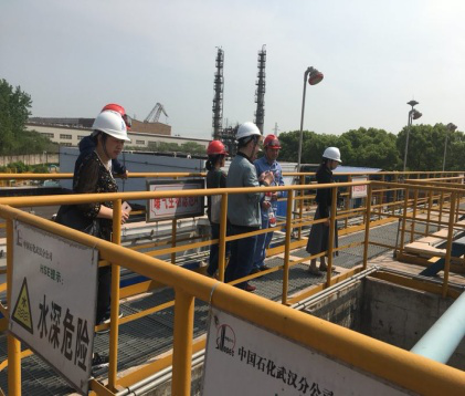 在武汉石化,教研室全体教师在技术人员的带领下参观了公司废水、废气处理设施,了解了企业对环保管理人才在能力、素质方面的要求,讨论了在环保监管趋严的形势下企业环保管理面临的挑战和对人才的需求。