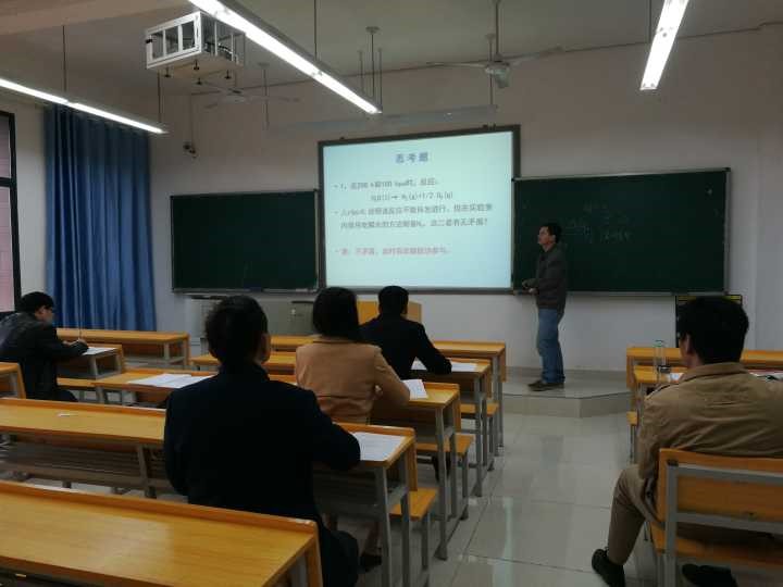 为了进一步提高我系教师教学能力,2018年10月20日上午,化工教研室组织了一次教师教学能力提升培训的活动。本次活动除刘蓉老师参加公司举办的讲座外,其他老师都全程参与此次活动。此外,胡拥军经理主动参与了此次教研室活动。