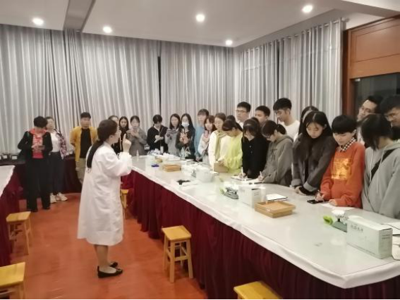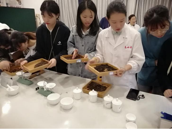 首先,蔡红梅以《茶叶感官审评》为主题,围绕我国六大茶类的特点、评茶的设备与要求等方面进行了详细讲授,让大家对茶叶品质鉴定、茶文化等方面有了更系统、科学的认识。之后,蔡红梅团队在基地茶叶审评室进行了评茶实操演练,详细的为大家演示了茶叶审评过程中的具体操作、技巧与细节。蔡女士蔼然可亲、幽默风趣的讲解方式,让大家在轻松愉快的氛围中学习到了丰富的茶叶审评与茶文化知识蔡女士的悉心指导下,大家对茶叶审评的理论与操作能力都有了快速的提高,在讲学即将结束时纷纷对蔡女士表示了由衷的感谢。