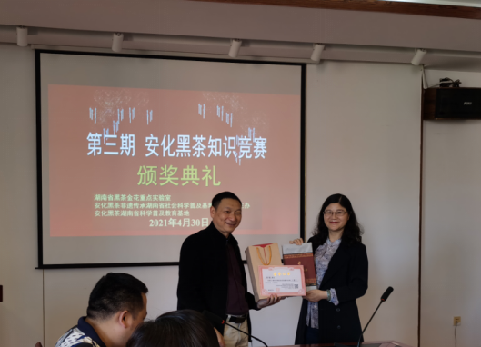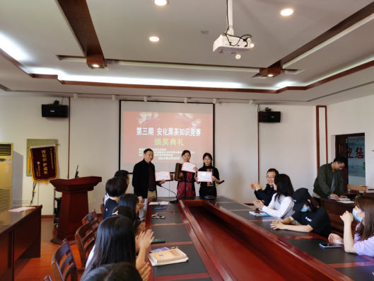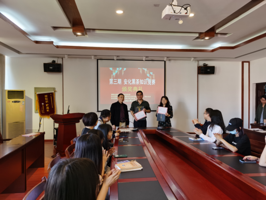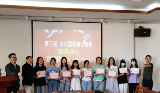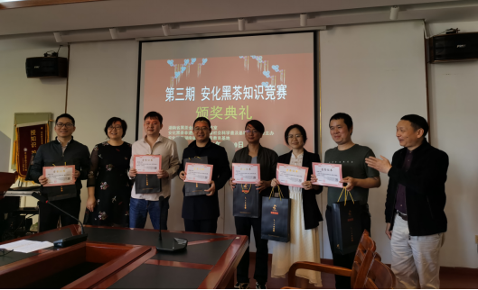 430日在黑茶学术交流中心举行了第三期安化黑茶知识竞赛颁奖,获奖选手和黑茶基地成员出席活动。
