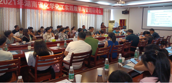中南大学刘耀驰教授做了“虚拟仿真实验教学项目建设”主题报告。湖南化工研究院有限公司陈明研究员、中南林业科技大学旷春桃教授、湖南工程公司皮少峰教授分别就实验室记录及规范要求、化工设计竞赛现状和问题及改革思路、实验室建设及实验教学改革做了专题报告。