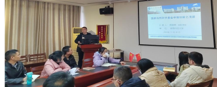 2023年11月30日,太阳成集团tyc9728特别邀请湖南科技大学材料科学与工程公司副经理颜建辉教授来校交流并分享国家自然科学基金申请经验。本次交流会在化工楼举行,由材化院副经理贺国文教授主持,50余名相关专业教师以及公司科研处领导参加了会议。