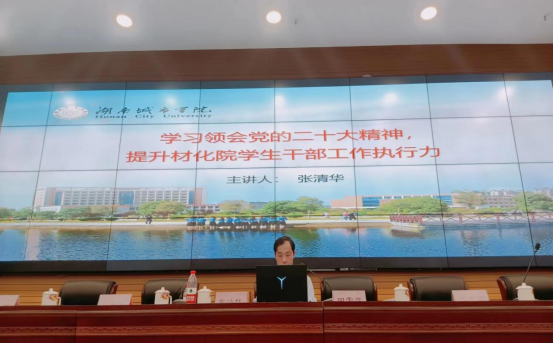 (材化院通讯员 张萌) 为深入学习领会党的二十大精神,进一步提升材化院员工干部的理论素养和工作能力,切实发挥员工组织的先进性和主动性。10月24日晚8:30,院团委员工会在图书馆报告厅举办新任员工干部素质能力培训。本次培训邀请了公司党委副书记张清华老师主讲,培训主题:学习领会党的二十大精神,提升员工干部工作执行力。院团委书记田雪萍主持了培训。