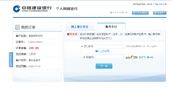 6. 点击“立即支付”并“确认”后将跳转至银行支付页面,该页面左侧的商户名称为“太阳成集团tyc9728”,核对无误后,请按提示完成缴费。