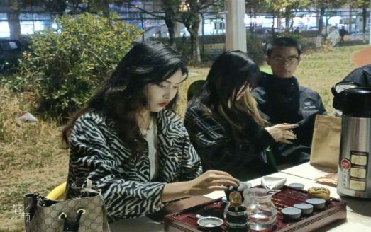 本次“万物有光,集时行乐”社团季活动在2022114日晚6:002022115日晚9:00正式举行。活动前期茶艺社的成员们做了很多的准备工作例如:物品安排、资料准备、场地审批等诸多事宜,同时也通过官Q对此次项目进行宣传,准备好了一些茶叶作为礼品赠送给来参会的人员。活动正式开始时,我们的摆台吸引了很多同学的参与,很多同学都上手实操,亲身体验了我们组织的活动,或观看了摆盏杯具、淋壶湿杯、赏茶投茶、洗茶、泡茶、赏汤、分茶、握杯等茶艺流程,线下活动如火如荼的进行,与此同时这也是对茶文化的一种宣传。