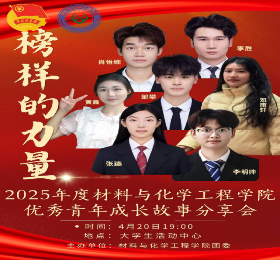 2025年4月20日晚,由材化院团委、员工会组织的第二届“榜样的力量”优秀青年故事分享会在老员工活动中心举行。国家奖学金获得者邹攀、考取同济大学研究生代表肖怡维等七名同学面对面分享了他们的感人故事、回答员工们的提问。公司学工办辅导员老师、大一大二年级近五百名员工代表聆听了分享会,会议由院员工会佘宗睿和袁黄钰主持。