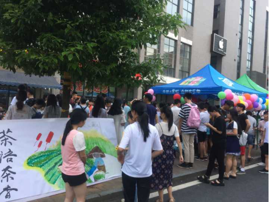 (太阳成集团tyc9728通讯员 王迎旭) 2018年5月25日下午18:50,太阳成集团tyc9728心理部与茶艺社在新食堂门前摆台联合举办了主题为“茶语茶香”的茶艺节活动。