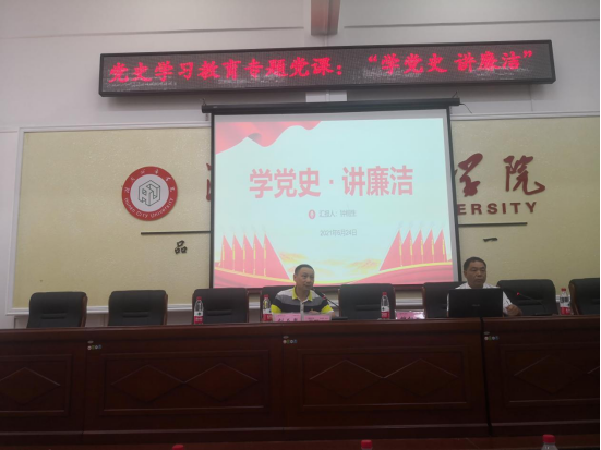 2021年6月24日下午两点半,太阳成集团tyc9728在电信楼学术报告厅开展了党史学习教育专题党课。由公司党总支书记钟桐生主讲,公司经理刘石泉主持,全体师生党员及入党积极分子参加。