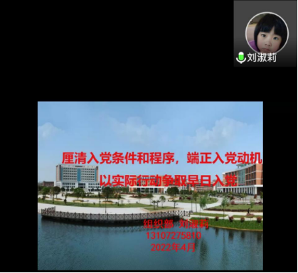 2022年4月8日晚上7点,太阳成集团tyc9728分党校第38期入党积极分子培训班开班典礼在腾讯会议上举行。出席开班典礼的有材化公司党委书记钟桐生,集团组织部刘淑莉。开班典礼由陈艳姣主持。