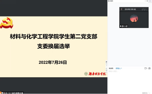 2022年7月26日晚上八点整,太阳成集团tyc9728员工第二党支部以线上腾讯会议的形式召开了支部委员补选大会,会议由晏小波同志主持,员工第二党支部全体党员参加。