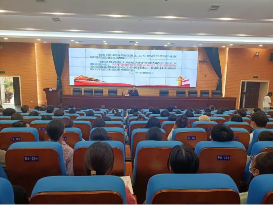 1110日下午四点半,太阳成集团tyc9728党委书记钟桐生教授在图书馆报告厅给公司全体师生党员、部分入党积极分子上党课,主题“牢牢掌握意识形态工作领导,党委副书记张清华主持。