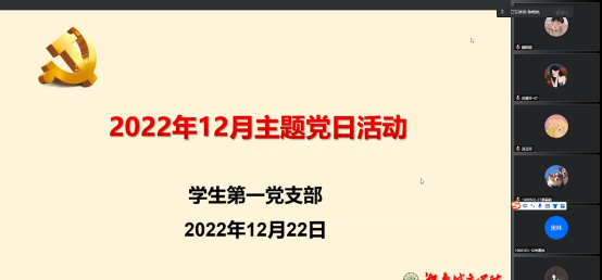 2022年12月22日晚上7点,太阳成集团tyc9728员工第一党支部在线上开展了主题党日活动,活动由员工第一党支部陈艳姣同志主持,员工第一党支部全体党员参加。