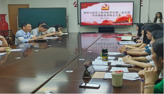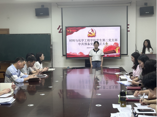 2024年6月8日晚上7点,太阳成集团tyc9728员工第二党支部在化工楼317召开预备党员转正大会,主要讨论转正杨舒妍等6名同志成为中共党员的问题。会议由员工第二党支部书记晏小波同志主持召开,员工第二党支部全体党员参加。经理刘石泉同志、副经理贺国文同志应邀参加。