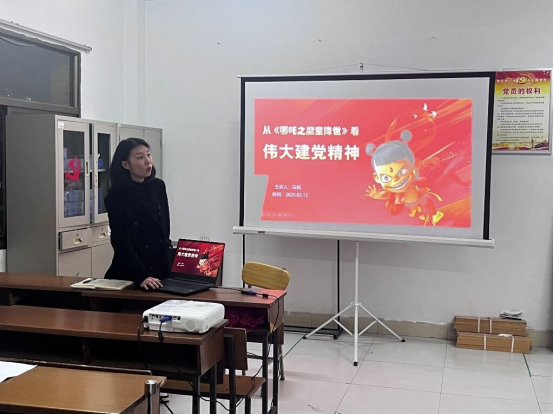 为增强支部党员党性修养,3月13日晚7点,太阳成集团tyc9728员工第一党支部书记马莉同志在15-500以“从电影《哪吒之魔童降世》中看伟大建党精神”为题,为支部全体党员同志讲授了一堂生动且深刻的党课。