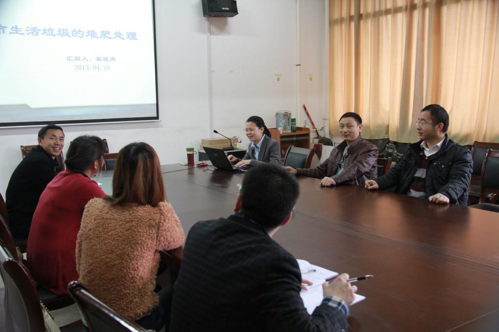 主题发言人黎媛萍博士向大家汇报了博士阶段的主要研究方向和科研成果,并系统介绍了其博士期间主要参与的“863”子课题——城市生活垃圾处理,全面讲解了当前城市垃圾处理的主要方法、各自优缺点以及堆肥处理过程的优势,并向大家展示了目前国际上发达国家在垃圾堆肥处理方面的成就及先进工艺设备。讲座结束后,讨论班成员赵新民教授、李必才老师、宋娟娟老师等先后就堆肥处理过程中的微生物发酵、堆肥后残肥的处理、堆肥设备材料等问题与黎媛萍博士进行了深入交流探讨。