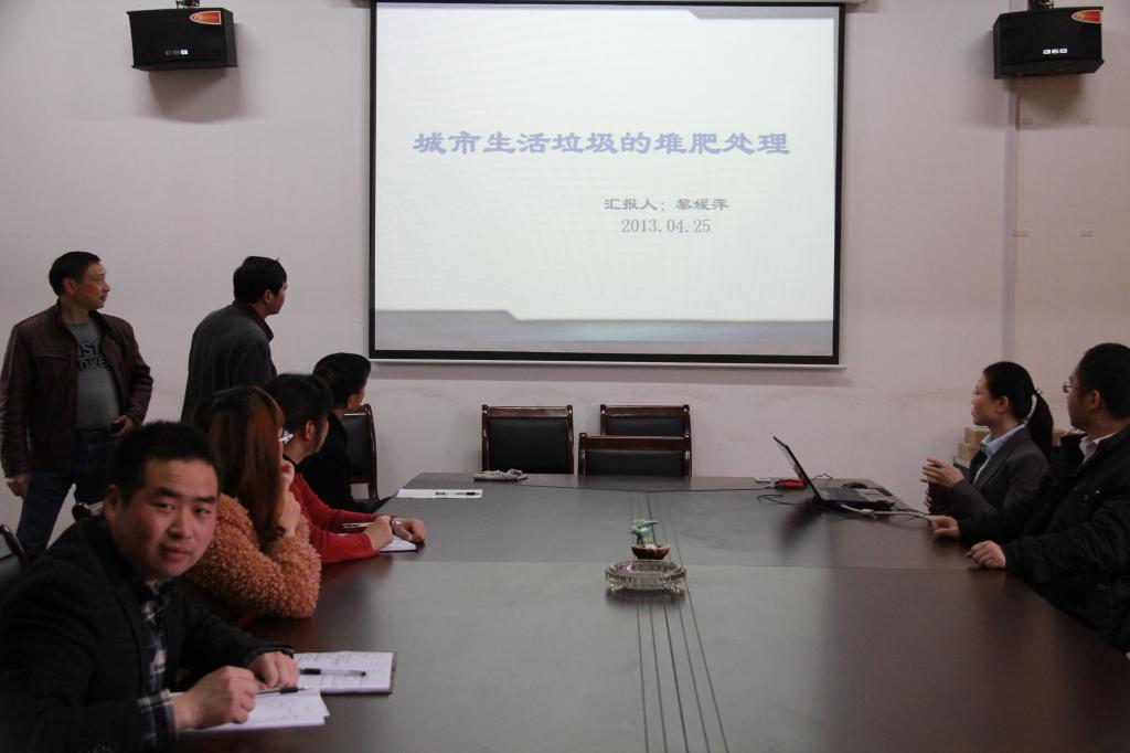 2013年5月10日周四上午8:30,化学与环境工程公司“生态修复与环境保护科研讨论班”活动在化工楼308会议室举行。会议由召集人董萌老师主持,讨论班成员黎媛萍博士作了题为“城市生活垃圾的堆肥处理”。本讨论班的其他成员刘淑云、宋娟娟、徐玲、库文珍、李必才等老师参加并发言,副经理刘石泉、胡拥军列席参加并作指导。