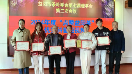 会议对2024年度“点赞益阳茶”活动进行了表彰,公司实验室选送的作品表现突出,表彰的2024年度“点赞益阳茶”活动3篇优秀科技论著、4个优秀特色茶会、3个优秀科普展览/活动、6个优秀科普短视频中,实验室获奖5项,其中刘湛军攥写的《Changes of microbial active ingredients and antioxidant capacity during fermentation process of dark tea》、胡治远攥写的《Morphological variation and expressed sequence tags-simple sequence repeats-based genetic diversity of Aspergillus cristatus in Chinese dark tea》2篇论文获2024年度优秀科技论著;余丽妍、粟一峰、周晓红主办的《安化黑茶小小传承人》获2024年度优秀特色茶会;周晓红、余松林主办的《上春山,喝茶去》获2024年度优秀科普展览/活动;任权、蒋俊杰、王诗琪、唐铖波、尹燕制作的《古韵新声 茶韵万千》获2024年度优秀科普短视频。