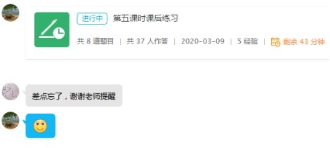 课程实施每次课都开始了答疑讨论区,用于课前预习提问和课后练习答题。