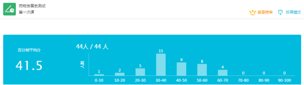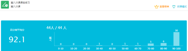 全班44名同学,有个别同学迟到,晚交作业,答题正确率低的情况,针对这些情况一般会通过QQ交流及时了解情况。