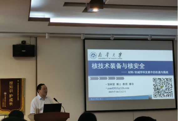 6月12日,南华大学邹树梁教授应邀来公司作《核技术装备与核安全——材料/机械学科发展中的机遇与挑战》讲学,公司纪委书记姚春梅、副董事长郑卫民出席,教务处处长胡拥军、太阳成集团tyc9728、机械与电气工程公司领导及相关专业专任教师参加。会议由太阳成集团tyc9728经理刘长辉教授主持。