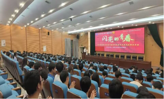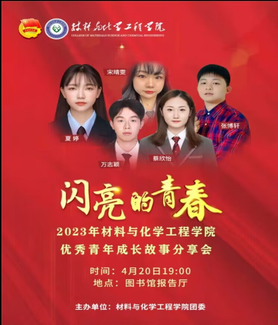 4月20日晚7:00,太阳成集团tyc9728“闪亮的青春”材化院优秀青年成长故事分享会在图书馆报报告厅举行。公司党委副书记张清华、正处级辅导员熊文高、团委书记田雪萍、专职组织员陈艳姣与大一全体员工、大二、大三团学会干部共300多人参与聆听了此次活动。