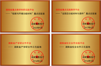 实践平台:现拥有湖南省低碳与环境功能材料重点实验室、高分子材料研究所、化工新材料研究所、湖南省科技创新团队、全固态储能材料与器件省重点实验室、湖南省产学研合作示范基地、湖南省校企合作示范基地等多个省级实践教学与科研平台。